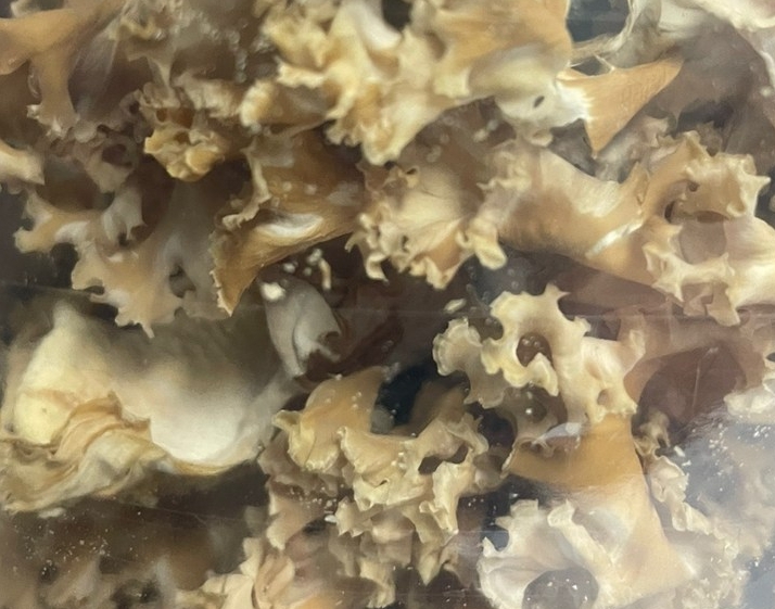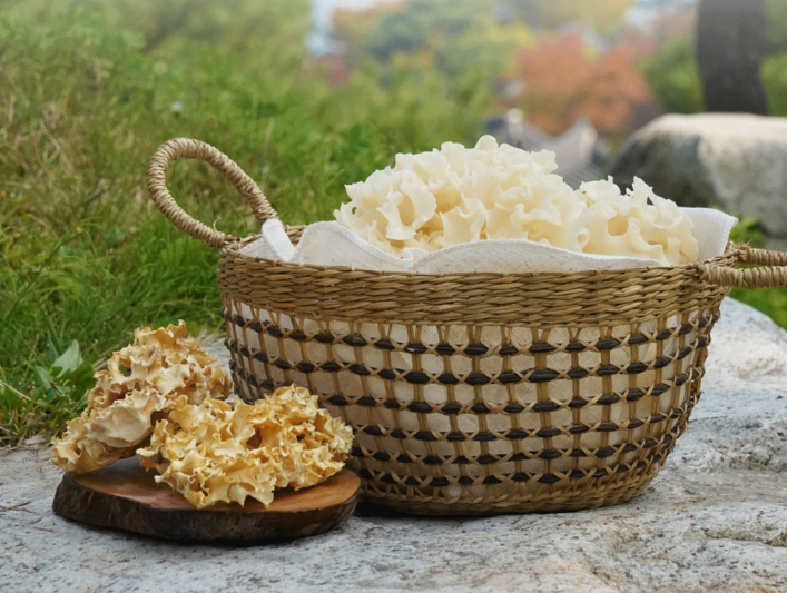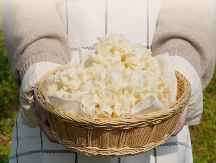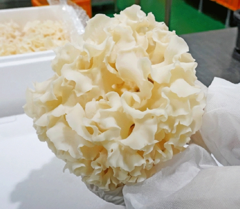 처음 꽃송이버섯을 봤을 때 그 모양이 참 신기했습니다. 이름처럼 정말 꽃이 활짝 핀 듯한 모습이었는데, 일반적인 버섯과는 달리 잎이 겹겹이 쌓인 듯한 독특한 형태였습니다. 학명은 **스파라시스 크리스파(Sparassis crispa)**이며, 주로 해발 500m 이상의 청정한 산림에서 자라는 귀한 버섯입니다. 자연 상태에서는 쉽게 발견하기 어려워 예전에는 일부 산에서만 채취할 수 있었지만, 최근에는 재배 기술이 발달하면서 일반 소비자들도 쉽게 접할 수 있게 되었습니다.