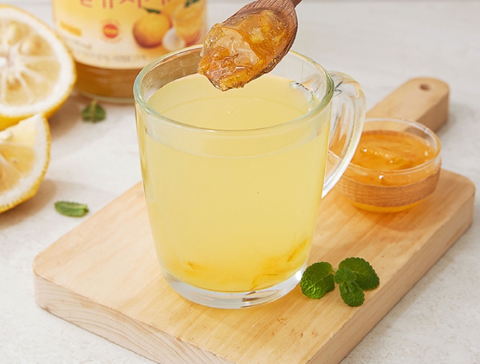 꿀유자차는 유자와 꿀이 만나 달콤함과 부드러움을 동시에 전해준다. 꿀에는 천연 항균물질과 아미노산이 포함되어 있어 피로 회복과 면역력 강화에 도움을 준다. 목이 아프거나 쉰 목소리가 날 때 따뜻한 꿀유자차를 마시면 목의 점막이 촉촉하게 보호된다. 꿀 속의 당분은 빠른 에너지 공급원이 되어 몸이 피로할 때 활력을 주는 효과도 있다.